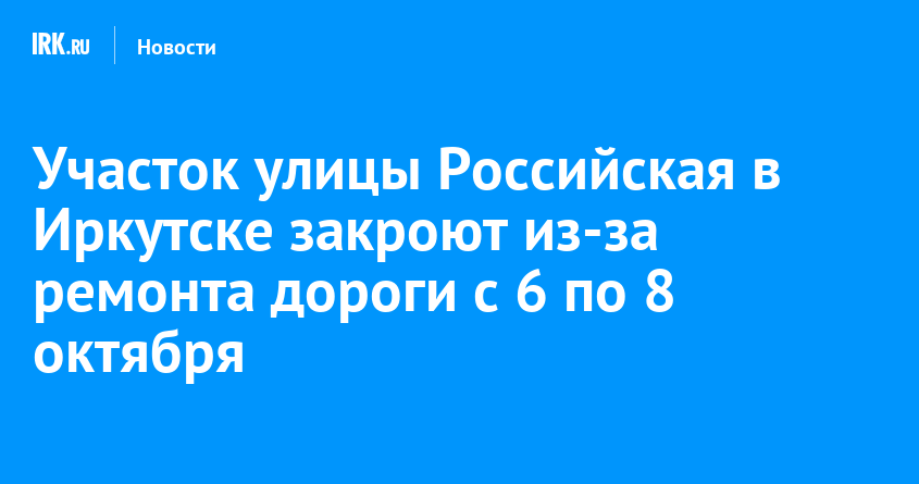 Участок улицы Российская в Иркутске закроют из-за ремонта дороги с 6 по 8 октября