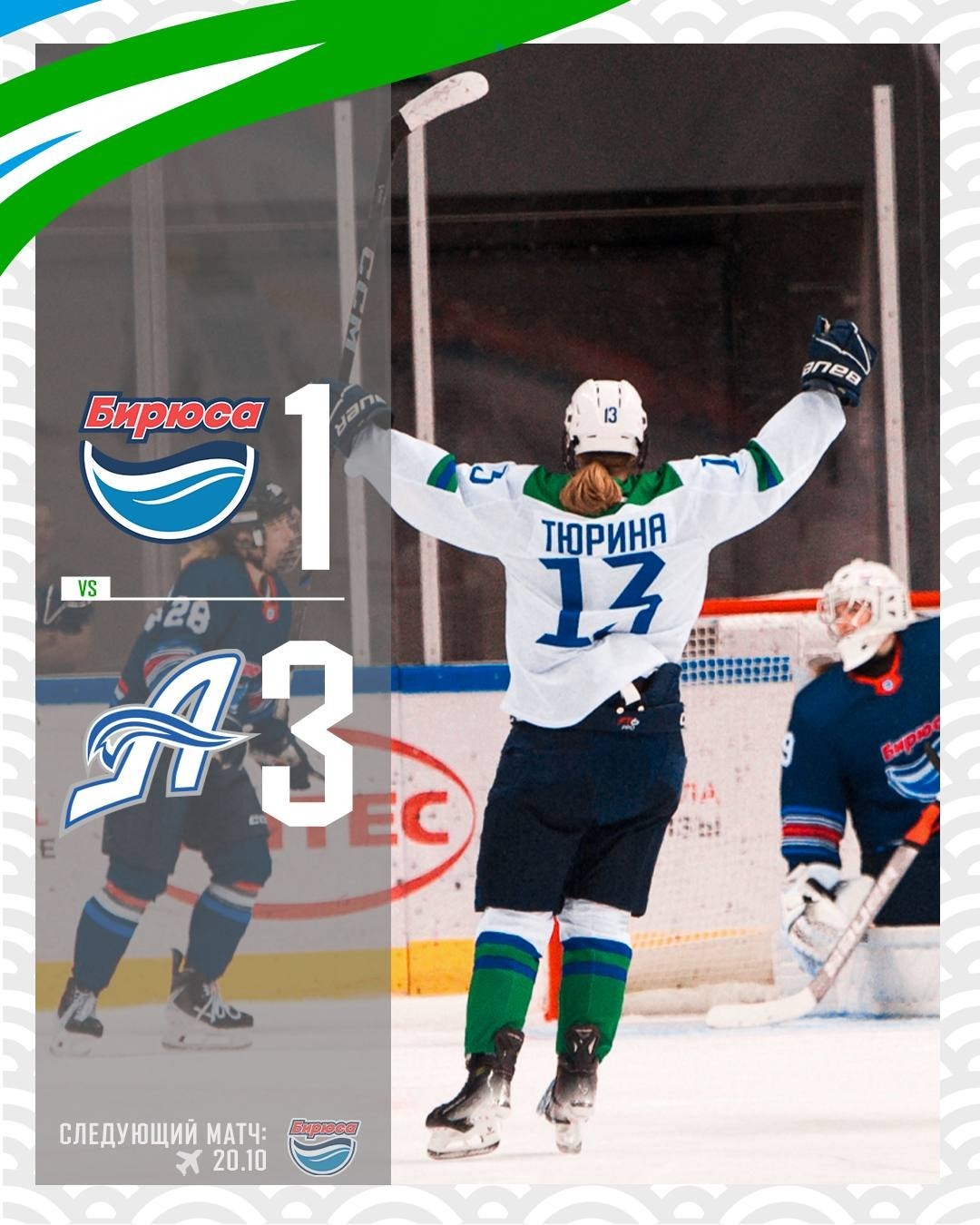 Сегодня уфимская женская хоккейная «Агидель» одержала вторую подряд победу в выездном матче чемпионата ЖХЛ в Красноярске. Встреча с местной «Бирюсой» закончилась со счётом 3:1 в пользу уфимского коллектива.