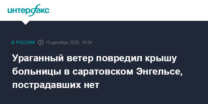 Москва. 13 декабря. INTERFAX.RU - Сильный ветер частично сорвал кровлю с лечебного корпуса Энгельсской городской клинической больницы №1, сообщили журналистам в пресс-службе Минздрава Саратовской области.