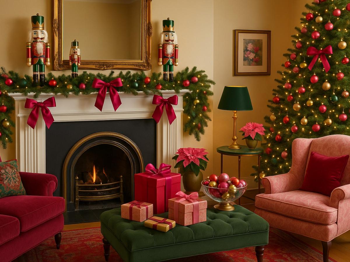 Фото: Generated by AI (DALL·E 3 by OpenAI) is licensed under Free for commercial use (OpenAI License) Рождественская гостиная"Декор, вдохновлённый балетом "Щелкунчик", — это фантастическое, изысканное и мечтательное воплощение праздничной классики, воплощенное в таких эффектных деталях, как бархатные ленты, позолоченные акценты и глубокие оттенки драгоценных камней", — сказала эксперт по трендам Etsy Дейна Айсом Джонсон.