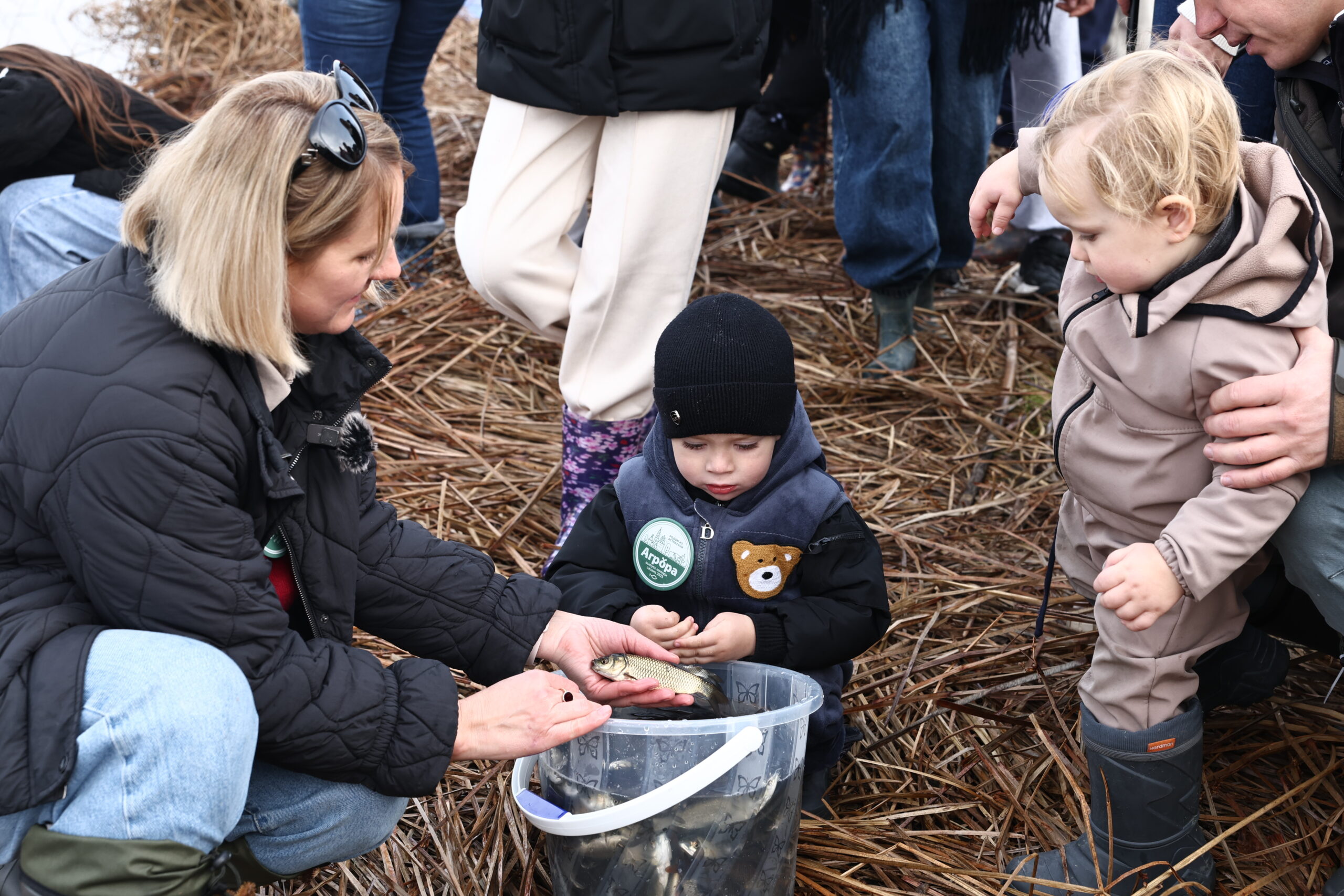 В церемонии выпуска рыбы приняли участие семьи работников крупных предприятий региона.