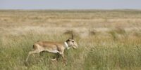 Один рог у реликтовой антилопы отсутствует. Возможно, он потерял его в борьбе за гарем и право продолжать свой рог. И, скорее всего, из этой схватки сайгак вышел победителем и теперь с гордостью позирует перед фотокамерой.