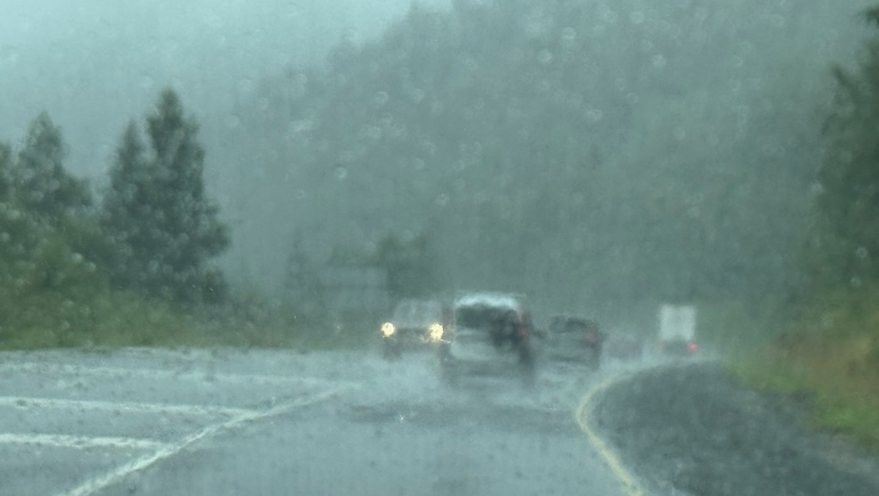 При сильном дожде водителей просят съезжать на обочину, включить «аварийку» и не покидать автомобиль.
