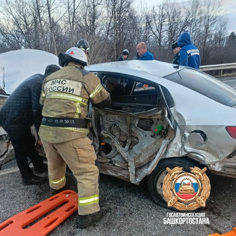 В результате ДТП один из автомобилей загорелся, пожар был потушен с помощью огнетушителя до прибытия пожарных, сообщили в МЧС по РБ.