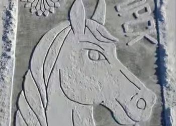 В Белогорске появилась первая ледовая открытка. Символ наступающего, 2026 года, — лошадь — нарисовали на льду первого залива за чеховским мостом, сообщает телеграм-канал «Белогорск ИНФО».