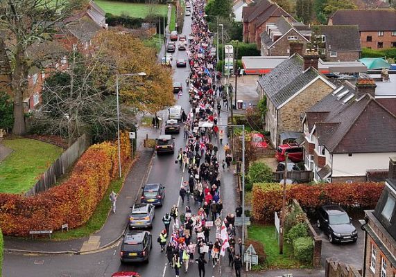 В Великобритании около 2 тысяч человек приняли участие в акции протеста против планов разместить 600 просителей убежища на территории военного лагеря в городе Кроуборо. Об этом 16 ноября сообщает газета Daily Mail.