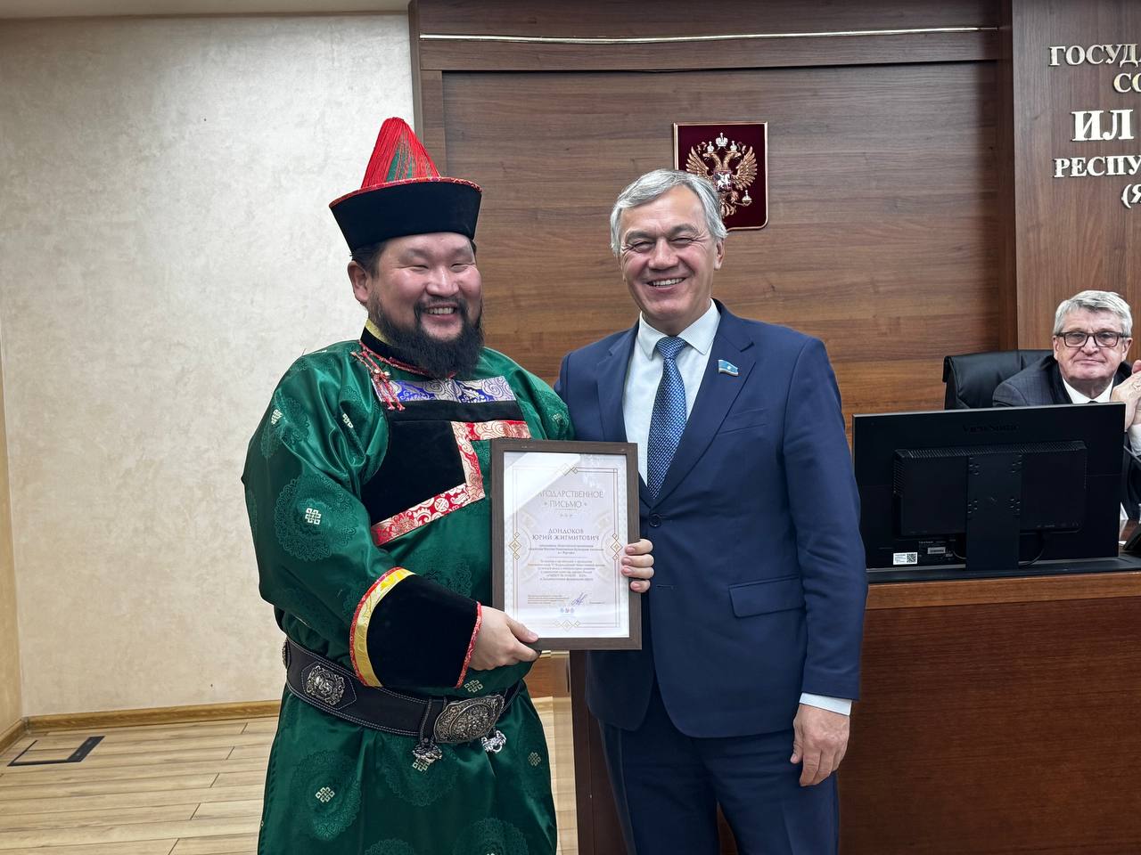 Заместитель председателя Государственного Собрания (Ил Тумэн) Якутии Афанасий Владимиров наградил членов организационного комитета межрегионального (окружного) этапа VI всероссийской общественной премии за личный вклад в этнокультурное развитие и укрепление единства народов России «Гордость нации-2025».