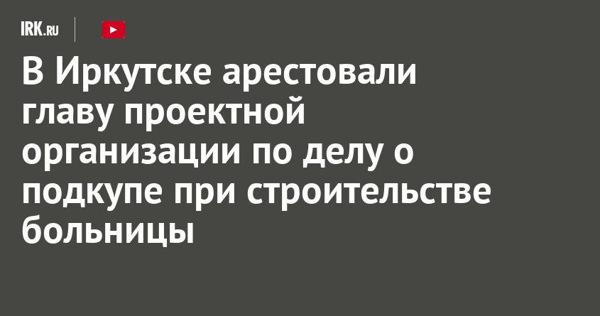 В Иркутске арестовали главу проектной организации по делу о подкупе при строительстве больницы