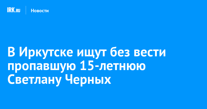 В Иркутске ищут без вести пропавшую 15-летнюю Светлану Черных