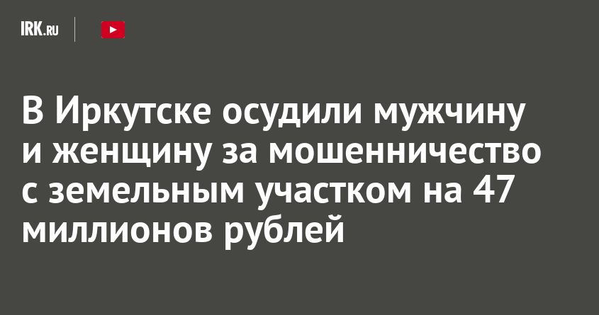 В Иркутске осудили мужчину и женщину за мошенничество с земельным участком на 47 миллионов рублей