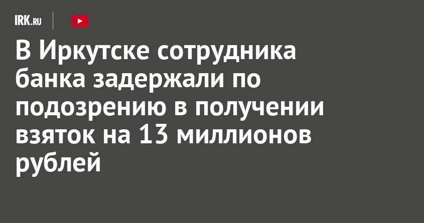 В Иркутске сотрудника банка задержали по подозрению в получении взяток на 13 миллионов рублей