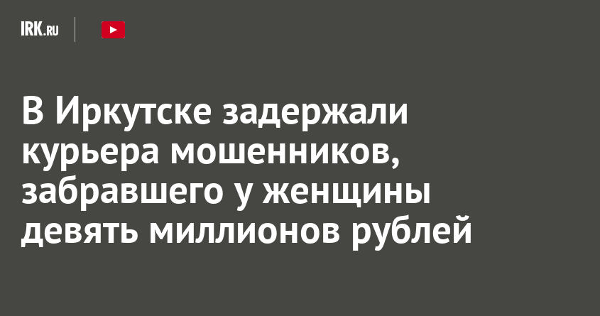 В Иркутске задержали курьера мошенников, забравшего у женщины девять миллионов рублей