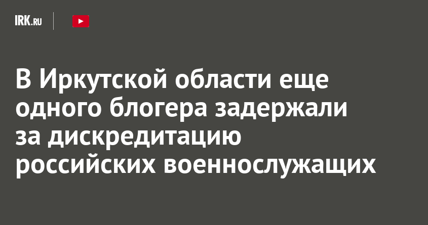 В Иркутской области еще одного блогера задержали за дискредитацию российских военнослужащих