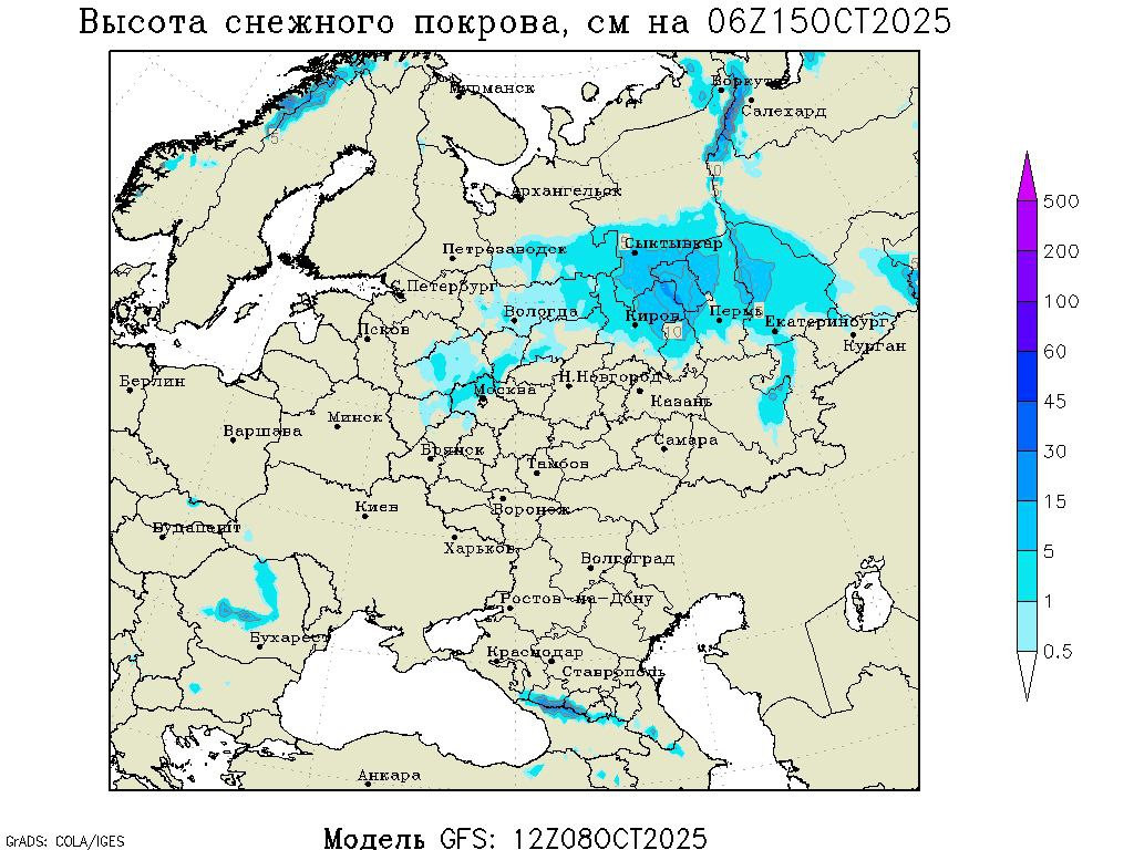 Согласно прогнозу CFS, который разместили в паблике «Любительская метеорология в Кирове», снежный покров, вероятно временный, может начать формироваться уже 13 октября, а к 15 числу сугробы на северо-востоке Кировской области могут вырасти до 10-15 сантиметров.