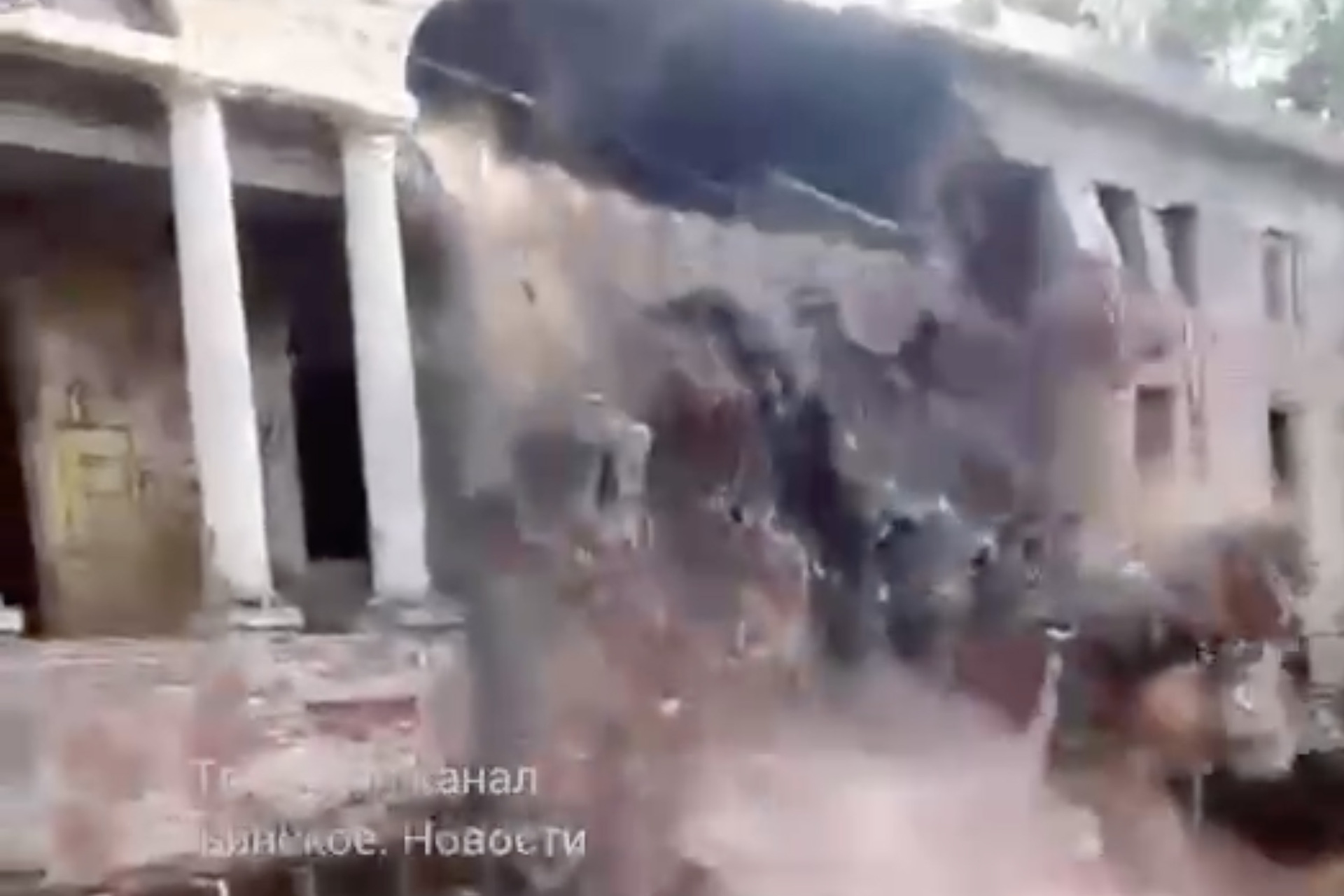 Момент обрушения части фасада с колоннами попал на видео. Отмечается, что точная причина обрушения неизвестна, однако на видео заметны следы земляных работ по периметру здания и опалубка.