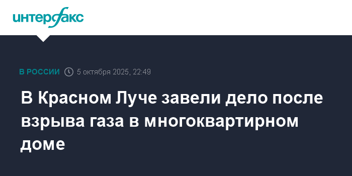 Москва. 5 октября. INTERFAX.RU - Следственное управление Следственного комитета РФ по Луганской народной республике возбудило уголовное дело по факту обрушения двух этажей жилого дома в городе Красный Луч в результате взрыва газа, сообщили в ведомстве.