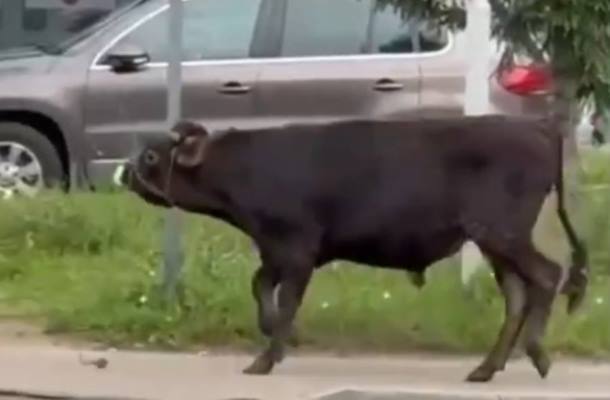 Как рассказали в министерстве сельского хозяйства и продовольствия Московской области, бык оказался на улице, выскочив из перевозившего его транспорта.