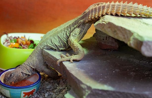Их рацион состоит из свежей зелени, нежирной зерновой смеси, а также из насекомых и небольшого количества грызунов. В природе эти ящерицы могут достигать в длину 75 см, а весить до 2 кг. При этом они практически не нуждаются в воде, так как получают её из конденсата или зарываются в мокрый песок.