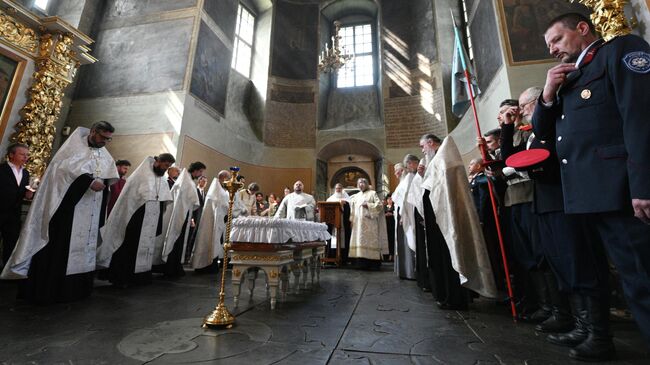 МОСКВА, 6 авг - РИА Новости. Отпевание князя Александра Трубецкого проходит в Донском монастыре Москвы, передает корреспондент РИА Новости Князь Александр Александрович Трубецкой скончался 30 июля в Москве в возрасте 78 лет. © РИА Новости / Кирилл Зыков | Перейти в медиабанкЦеремония отпевания князя Александра Трубецкого в Соборном храме в честь иконы Богородицы на территории Донского ставропигиального мужского монастыря в Москве© РИА Новости / Кирилл ЗыковПерейти в медиабанкЦеремония отпевания князя Александра Трубецкого в Соборном храме в честь иконы Богородицы на территории Донского ставропигиального мужского монастыря в МосквеОтпевание проходит в большом соборе Донской иконы Божией Матери . В храме установлены венки от МИД РФ, полномочного представителя президента РФ в СФО, Фонда Андрея Первозванного, Фонда наследия Русского зарубежья, от губернатора Брянской области, от Дома Русского зарубежья имени А. Солженицына, от Россотрудничества Проститься с князем пришли политолог Наталья Нарочницкая, депутат Госдумы РФ Вячеслав Никонов, генерал-лейтенант Леонид Решетников, представители Дома русского зарубежья, представители Объединения памяти императорской гвардии, председателем которого был Трубецкой Князь будет похоронен в Донском монастыре в усыпальнице родственной династии Голицыных. Трубецкой родился в 1947 году в Париже. Он был потомком знаменитого русского дворянского рода Трубецких-Голицыных, оказавшегося в эмиграции после Гражданской войны. Князь возглавлял ассоциацию "Франко-российский альянс", а также поддерживал воссоединение Русской православной церкви и Русской православной церкви за границей. Трубецкой - почетный профессор Московского государственного университета.