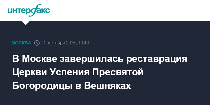 В Москве завершилась реставрация Церкви Успения Пресвятой Богородицы в Вешняках