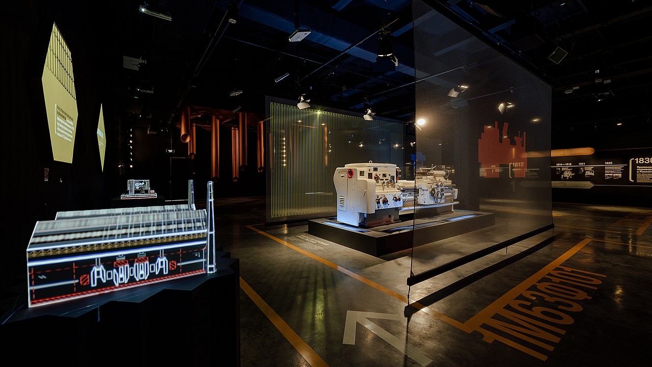 Конструкция и замысел — через детали и узлы станков раскрывается инженерная логика, внутренняя красота и структура машин. Экспонаты представлены как элементы визуального языка, за которыми стоит труд проектирования и производства. Производство и человек — документы, фотографии и предметы рассказывают об условиях труда, сменных заданиях и техническом обучении. Этот раздел показывает, как станок и человек сосуществовали в едином производственном пространстве. Зона опыта — зритель сталкивается с физической реальностью станка, может понять, как он устроен и что значит работать на нём. Здесь важны тактильные, визуальные и пространственные ощущения — выставка предлагает прочувствовать материал через взаимодействие с его физической природой.