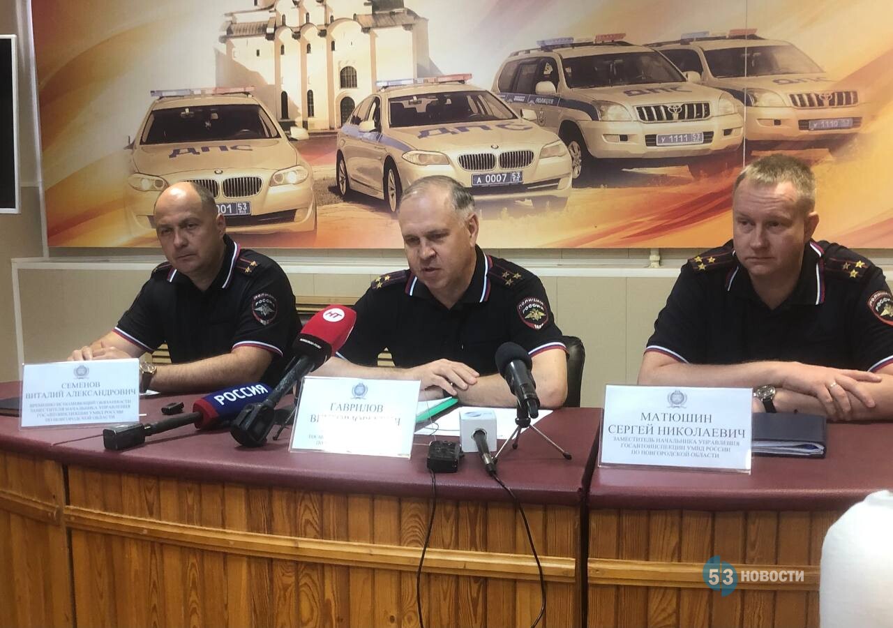 Спикерами пресс-конференции стали начальник Управления Госавтоинспекции УМВД России по Новгородской области полковник полиции Виктор Гаврилов, его заместитель полковник полиции Сергей Матюшин и врио заместителя начальника подполковник полиции Виталий Семёнов.