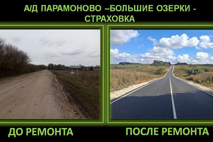 Новая дорога не только соединяет села Парамоново, Большие Озерки и деревню Страховка, но и обеспечивает доступ к социально значимым объектам, таким как Большеозёрский фельдшерско-акушерский пункт и Марьинский Дом Культуры.