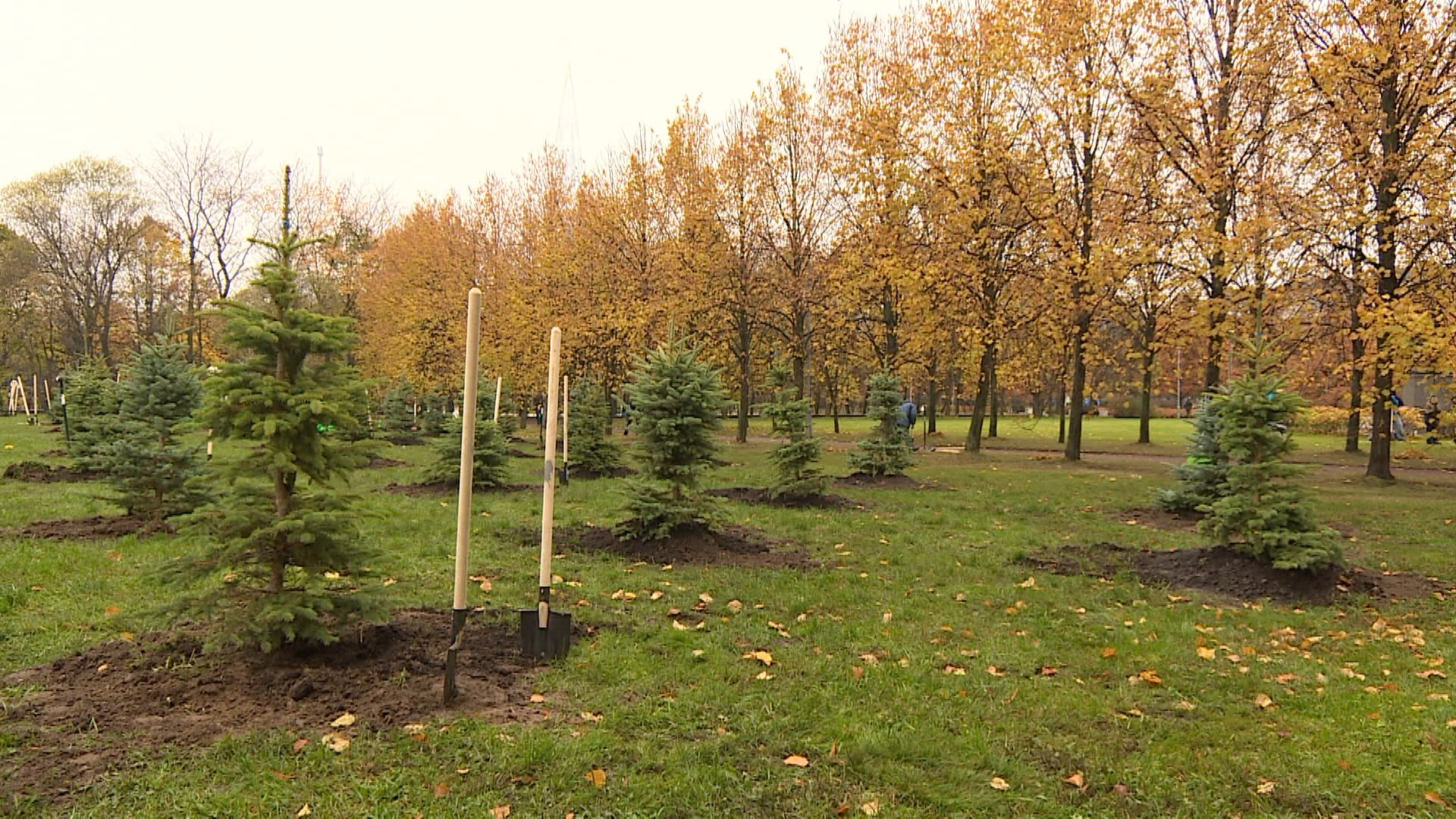 В парке 300-летия появилась новая аллея: в честь годовщины Великой Победы высадили 80 елей