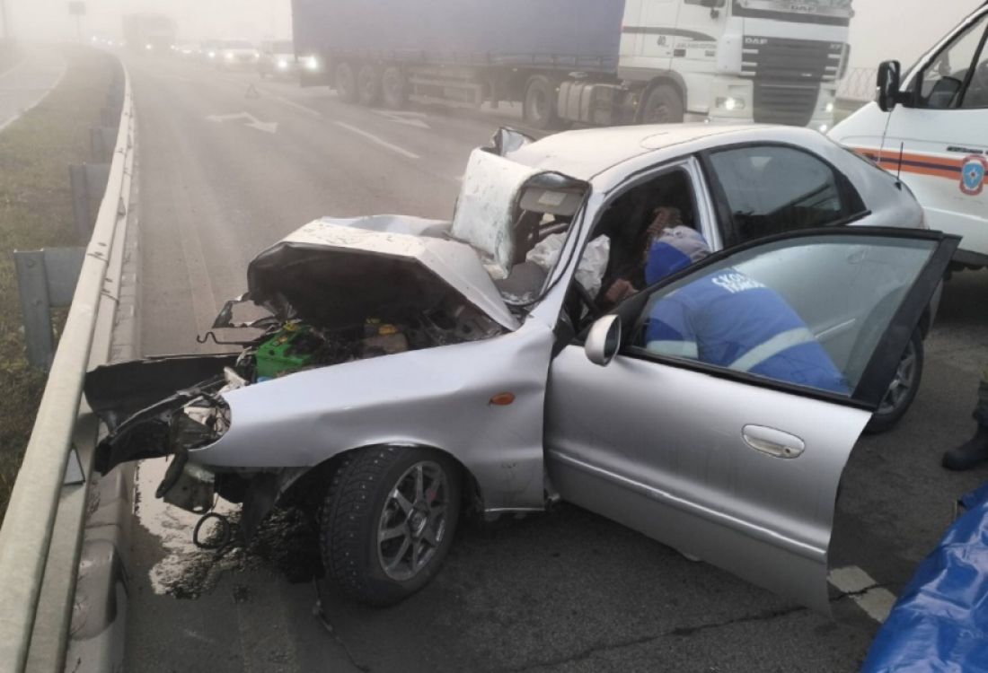 Участниками столкновения стали Daewoo и грузовик DAF с полуприцепом. За рулем легкового автомобиля находился 38-летний мужчина, а грузовиком управлял 55-летний водитель.