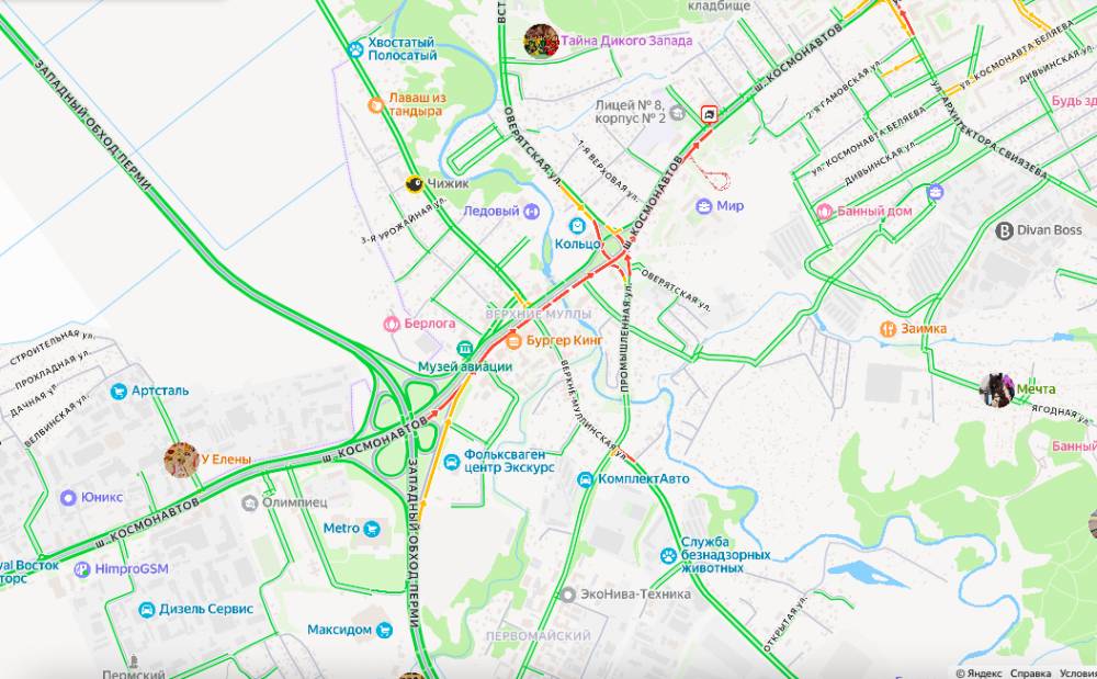На шоссе Космонавтов в Перми образовалась пробка в результате дорожно-транспортного происшествия. Городской департамент транспорта сообщает о задержках в движении общественного транспорта, в частности, автобусов маршрутов №13, 54 и 80. Время ожидания может превышать 15 минут. Водителям рекомендуют по возможности выбирать альтернативные маршруты для движения.С 13 октября изменится схема движения трех пригородных маршрутовФото на главной: Сервис Яндекс.Пробки.