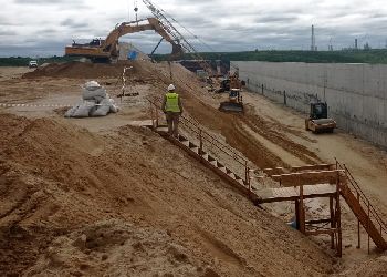 Как сообщает ГК Нацпроектстрой, строители готовят фундаменты для зданий и сооружений будущего энергообъекта. На участке рабочие вырезали слабые грунты в основании земляного полотна, послойно уплотнили насыпь для формирования котлована, погрузили более 260 свай для подпорных стенок. Завершается устройство водоотведения, для укрепления прилегающих склонов ведется укладка 20 тысяч квадратных метров геотекстиля и монтаж габионных конструкций.