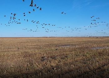 По словам орнитолога, к этому времени кукуруза убрана только та, которая предназначена на силос. Потери початков при уборке составляют основу осеннего корма для журавлей и гусей перед миграцией.
