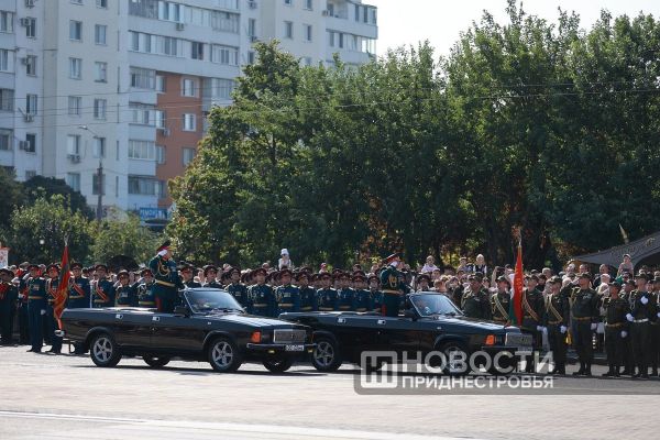 Последние четыре года подобные мероприятия не проводились — в ПМР действует высокий режим террористической опасности. В параде принимают участие порядка тысячи человек: представители приднестровских вооруженных сил, будущие защитники, участники боевых действий 1992 года. К участникам с приветственно-поздравительной речью обратился президент ПМР Вадим Красносельский.