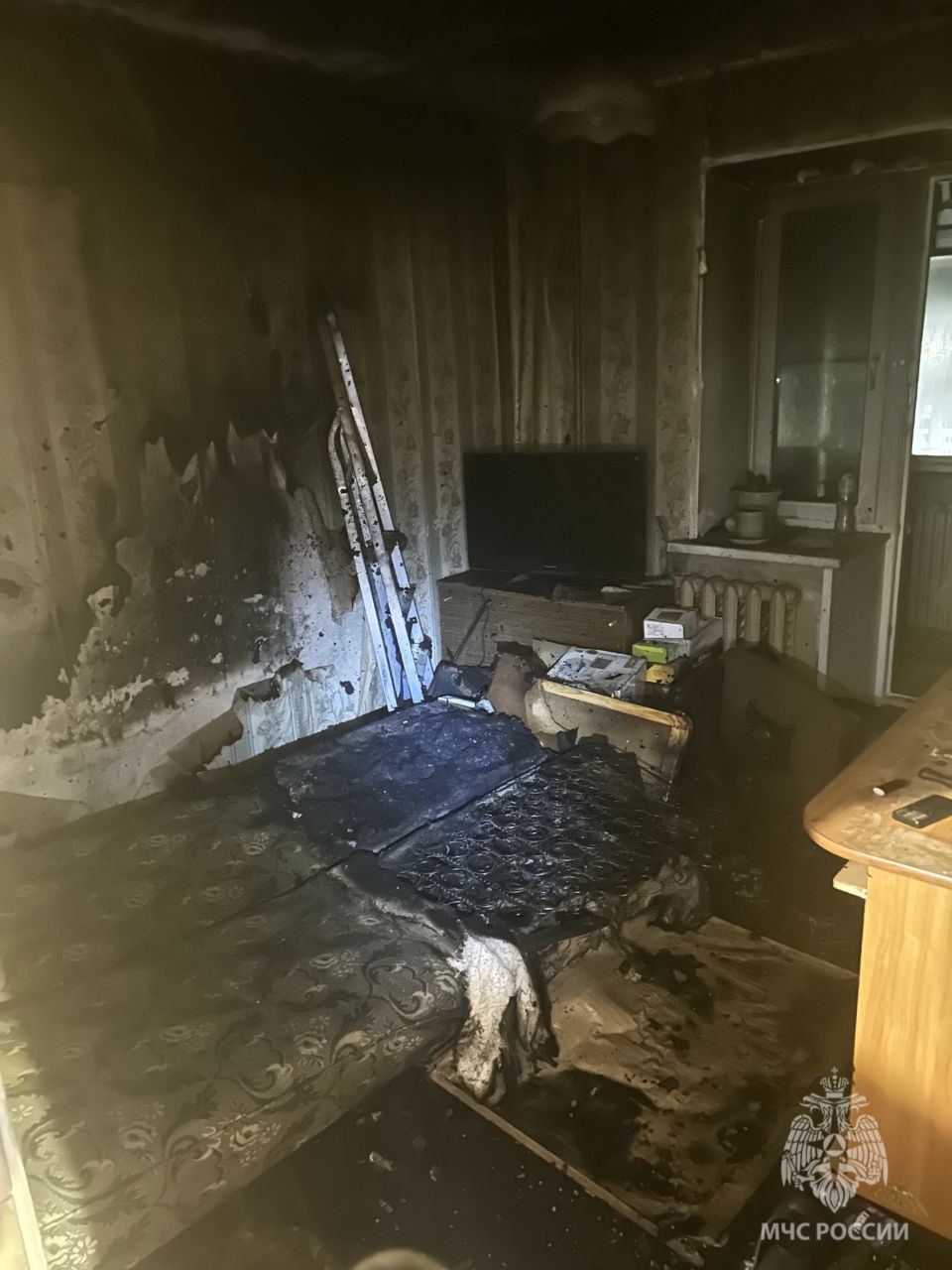 Пламя уничтожило постельные принадлежности на всей площади, а также закопчена квартира на 30 квадратных метрах. Предположительно очаг возгорания находился в месте расположения дивана. Предварительная причина – загорание сгораемых материалов от тлеющей сигареты.