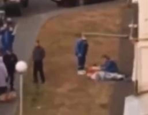 К посту прикреплена видеозапись, на которой запечатлено, как врачи оказывают помощь лежащему на земле парню.