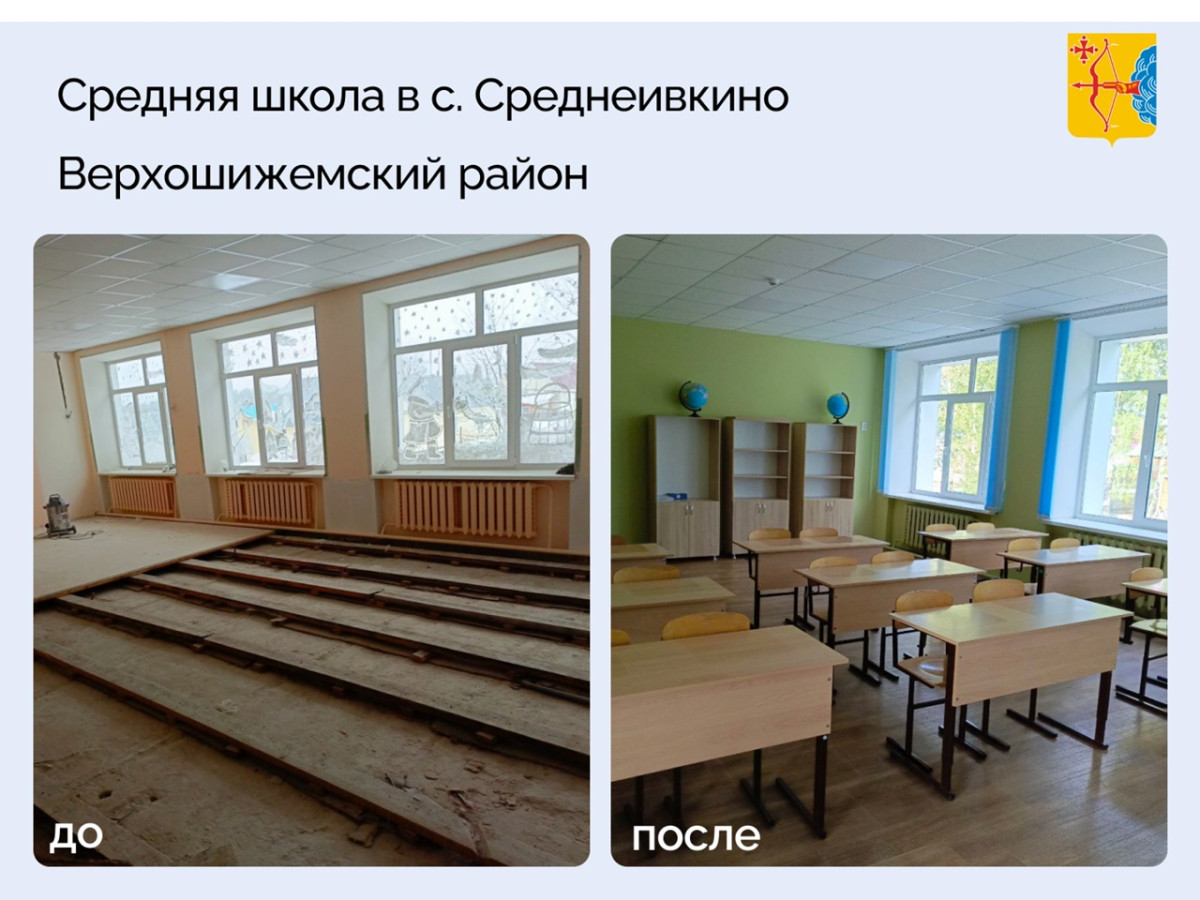 В селе Среднеивкино Верхошижемского района завершился капитальный ремонт здания средней школы. Работы проводились в рамках нацпроекта «Молодежь и дети».