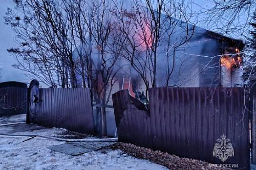 По оперативной информации, на момент прибытия пожарных подразделений дом, веранда и зимняя кухня горели изнутри открытым пламенем, людей в доме не было.