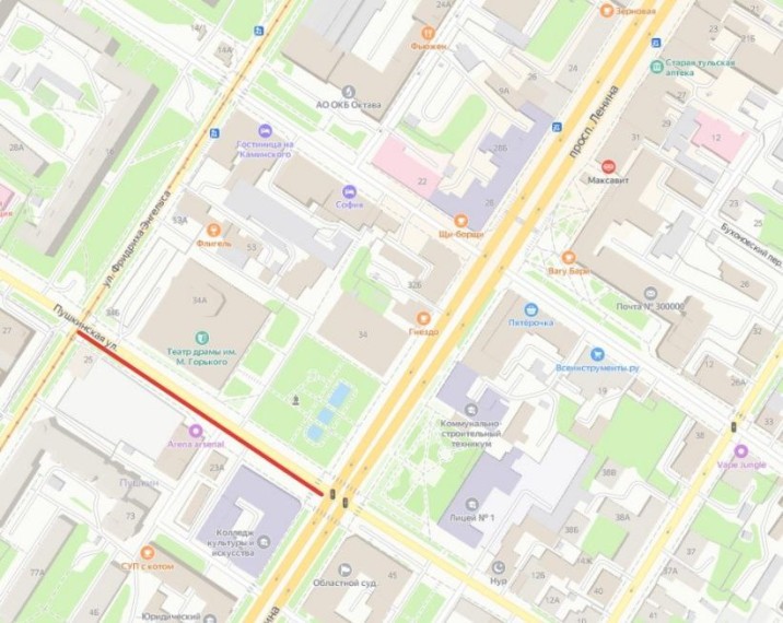 В Туле на Пушкинской введут временные ограничения для транспорта