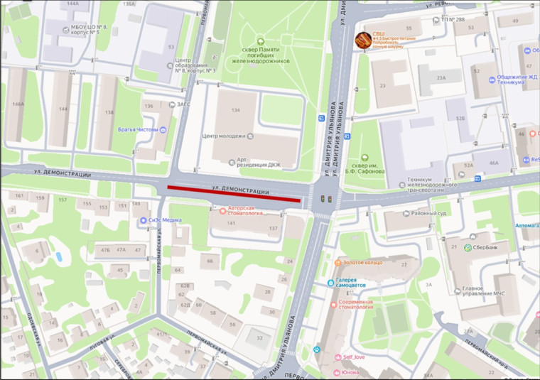Остановка и стоянка всех видов транспорта будет запрещена на участке от улицы Дмитрия Ульянова до Первомайской. Ограничения связаны с обеспечением безопасности дорожного движения во время проведения массовых мероприятий.