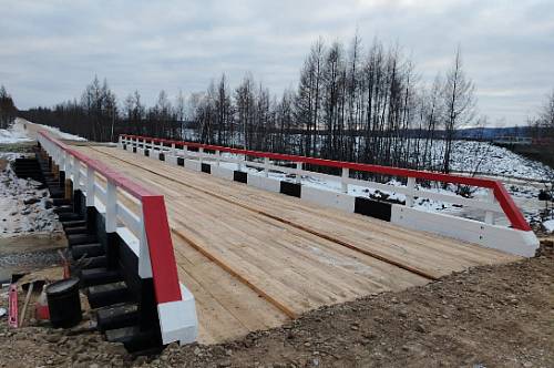 Ранее подрядчик отремонтировал три моста, расположенные на 18-м километре через ручей Заячий, на 21-м километре через ручей Железный и на 24-м километре через ручей Онен автодороги Ларба — Лопча.