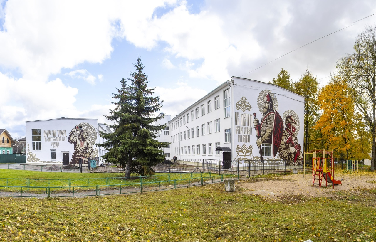 Как ранее сообщали «53 новости», в Новгородской области продолжается фестиваль уличной культуры «Страницы истории». Так, в Великом Новгороде появился диптих на фасаде школы № 8.