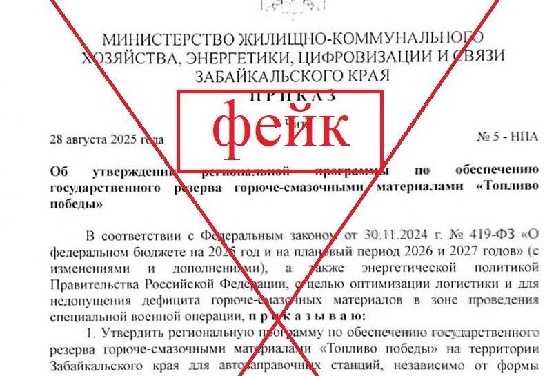 В министерство ЖКХ Забайкальского края обратились журналисты с информацией, что якобы вышел приказ министра «Об утверждении программы по обеспечению государственного резерва горюче-смазочными материалами «Топливо победы». Он вроде бы обязывает АЗС передавать в государственный резерв 50% горюче-смазочных материалов, приобретенных и оплаченных гражданами.