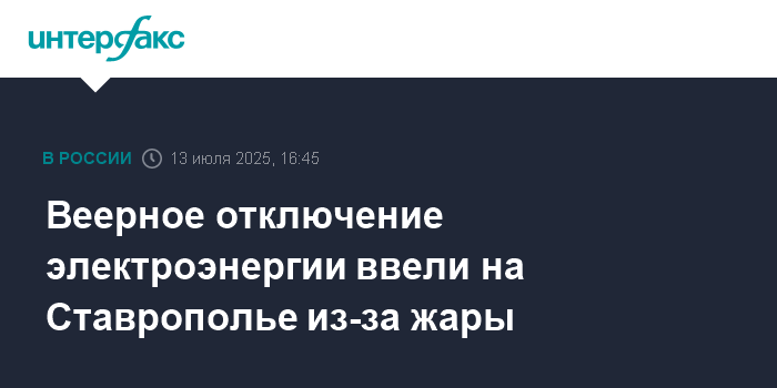 Веерное отключение электроэнергии ввели на Ставрополье из-за жары