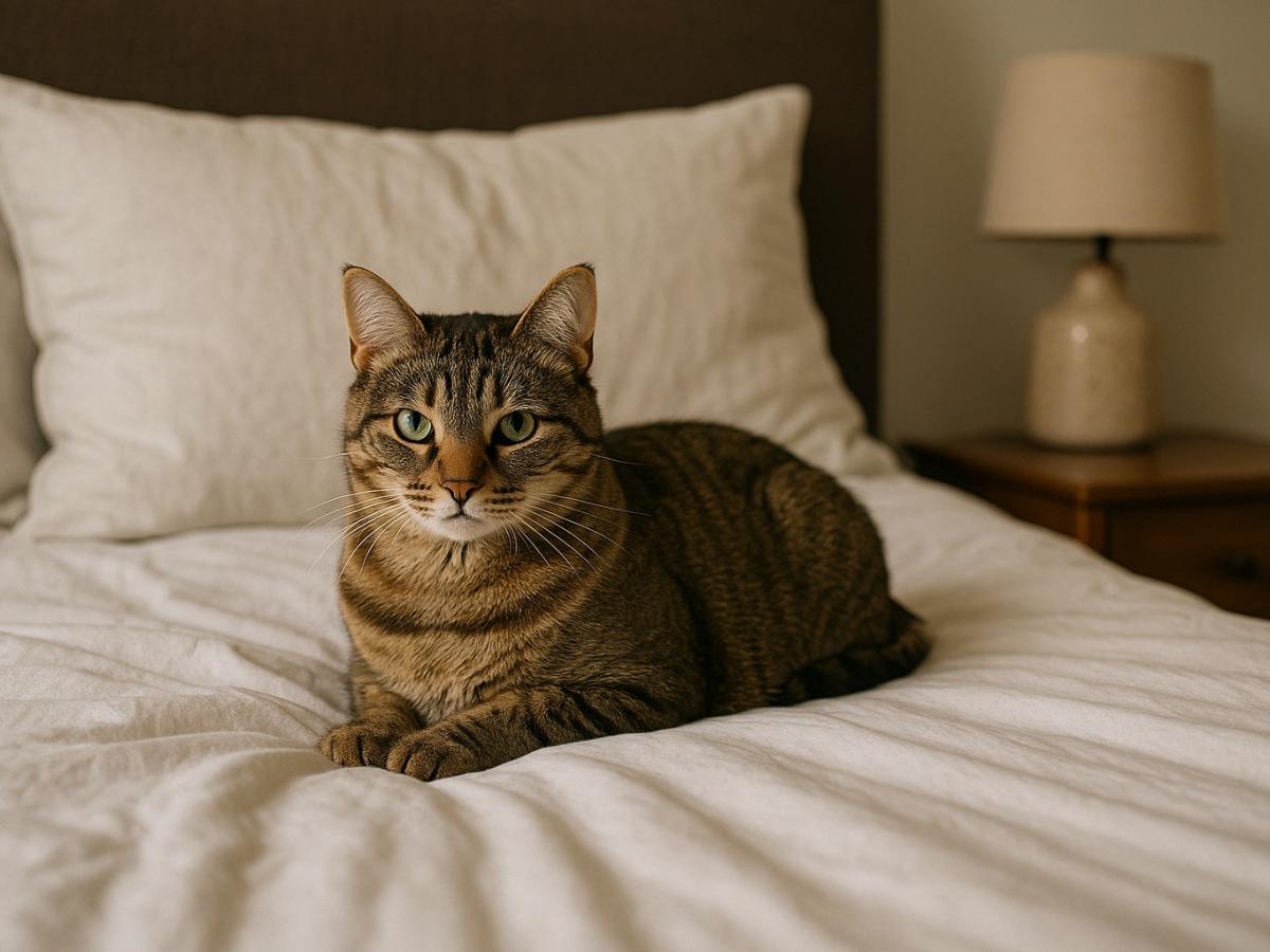 Фото: Generated by AI (DALL·E 3 by OpenAI) is licensed under Free for commercial use (OpenAI License) кошка на кровати Основная причина запахаЕсли кот не кастрирован, запах в доме почти неизбежен. А при нескольких таких питомцах ситуация усугубляется: метки пропитают всё вокруг — мебель, ковры, одежду.Ни один, даже самый дорогой наполнитель, не спасёт, пока животное продолжает метить территорию.