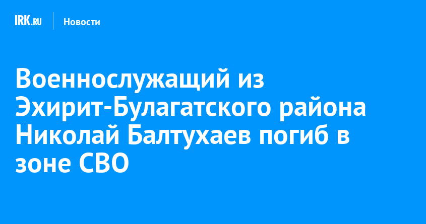 В зоне проведения спецоперации погиб военнослужащий из Эхирит-Булагатского района Николай Балтухаев. Контракт с Минобороны РФ мужчина заключил в марте 2025 года, сообщил в соцсетях мэр района Геннадий Осодоев.
