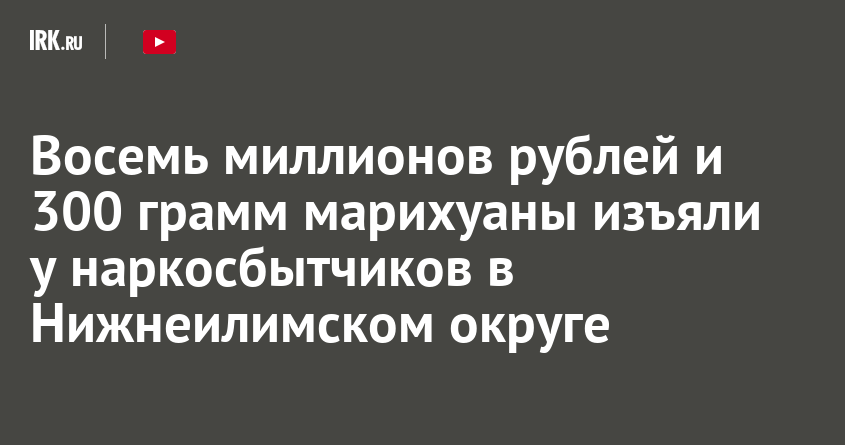 Восемь миллионов рублей и 300 грамм марихуаны изъяли у наркосбытчиков в Нижнеилимском округе