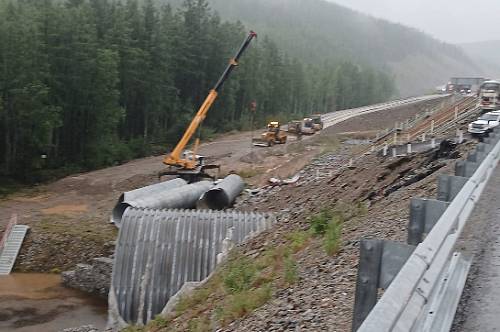 Восстановление проезда в районе провала в Тындинском округе осложнил проливной дождь