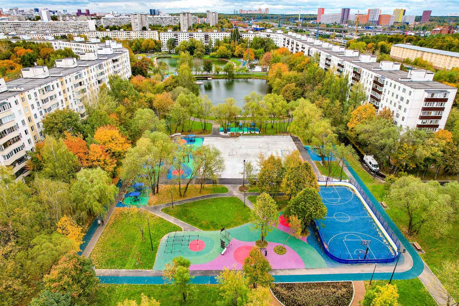 У Ивановских прудов благоустроили всесезонную спортплощадку для футбола, баскетбола и хоккея. К ней добавили скейт‑парк, тренажеры, воркаут‑комплексы и полосу препятствий в стиле «русский ниндзя».