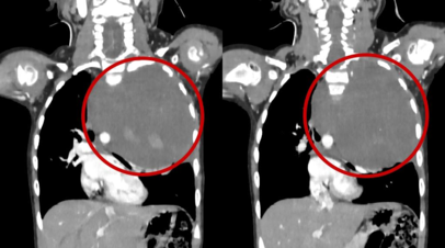 После телемедицинской консультации ребёнка направили в РДКБ. Повторное обследование подтвердило наличие гигантского новообразования размером 10 на 12 сантиметров, которое занимало 75% плевральной полости.