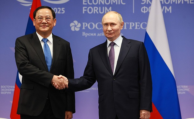 Владимир Путин провёл встречу с Премьер-министром Лаосской Народно-Демократической Республики Сонсаем Сипхандоном, который прибыл в Россию для участия в пленарном заседании юбилейного, десятого Восточного экономического форума 5 сентября.